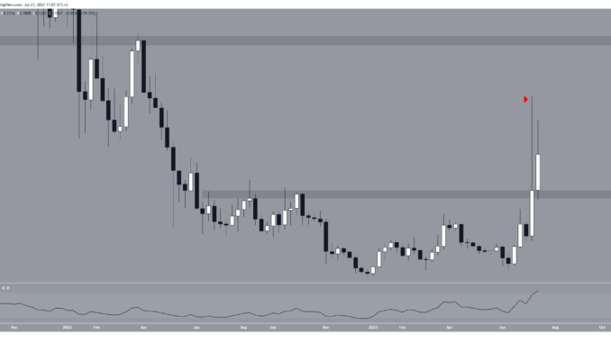 In the weekly time frame technical analysis, it can be observed that XLM’s price recently surpassed the long-standing 400-day resistance at $0.13 on July 10, resulting in a new yearly high at $0.20.
