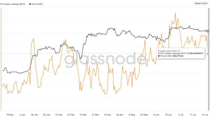 BTC Balances on Over-The-Counter Desks Drop to $150M: Glassnode