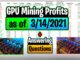 GPU Mining Profits as of 3/14/21 | Answering Questions | Twitch Recap